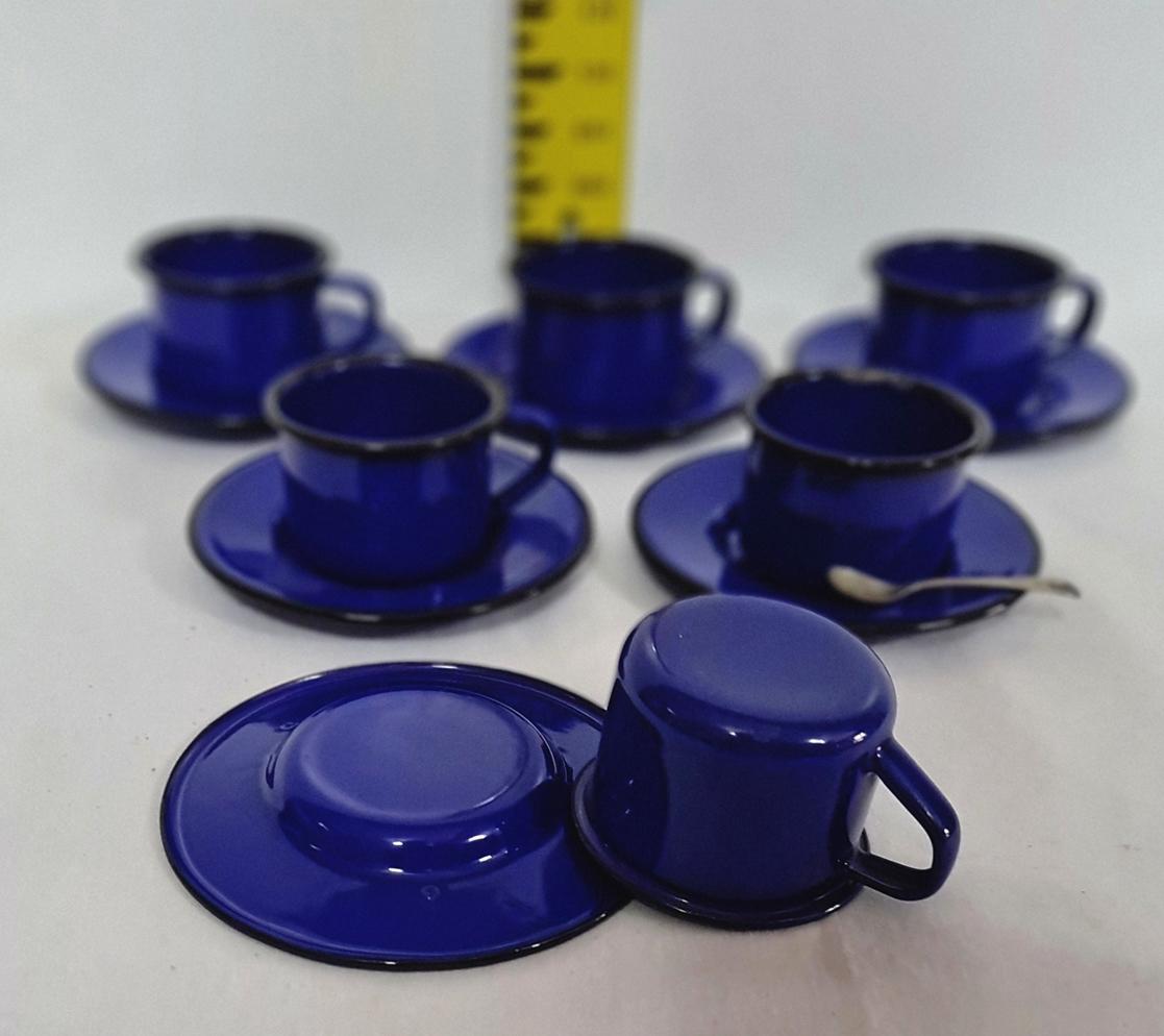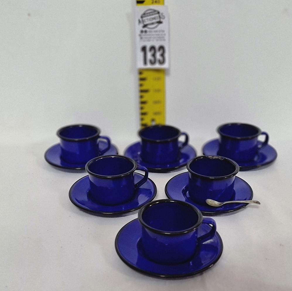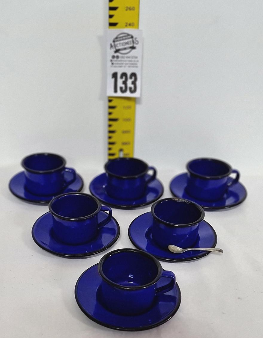 133. 6 x Studio Nova Caribbean blue cup and saucer set and a sugar spoon